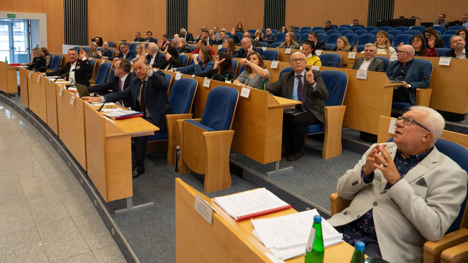 Zarząd województwa dysponuje większościowym poparciem radnych, głosowanie jednak nie jest nigdy czczą formalnością. Poprzedziła je dyskusja nad projektem budżetu. Radny PiS Krzysztof Stawski oprócz uwag krytycznych zwrócił też uwagę na pozytywy, zwłaszcza w kwestii inwestycji w miejscowościach poza metropolią. Wskazał jednak, że na przychody budżetu składają głównie środki z funduszy unijnych, wsparte kredytem. Radni PiS zapowiedzieli, że nie zagłosują przeciw przyjęciu budżetu. Poparcie zapowiedzieli natomiast radni koalicyjnego klubu Trzecia Droga. Ostatecznie 23 radnych głosowało za przyjęciem budżetu, 9 wstrzymało się od głosu.