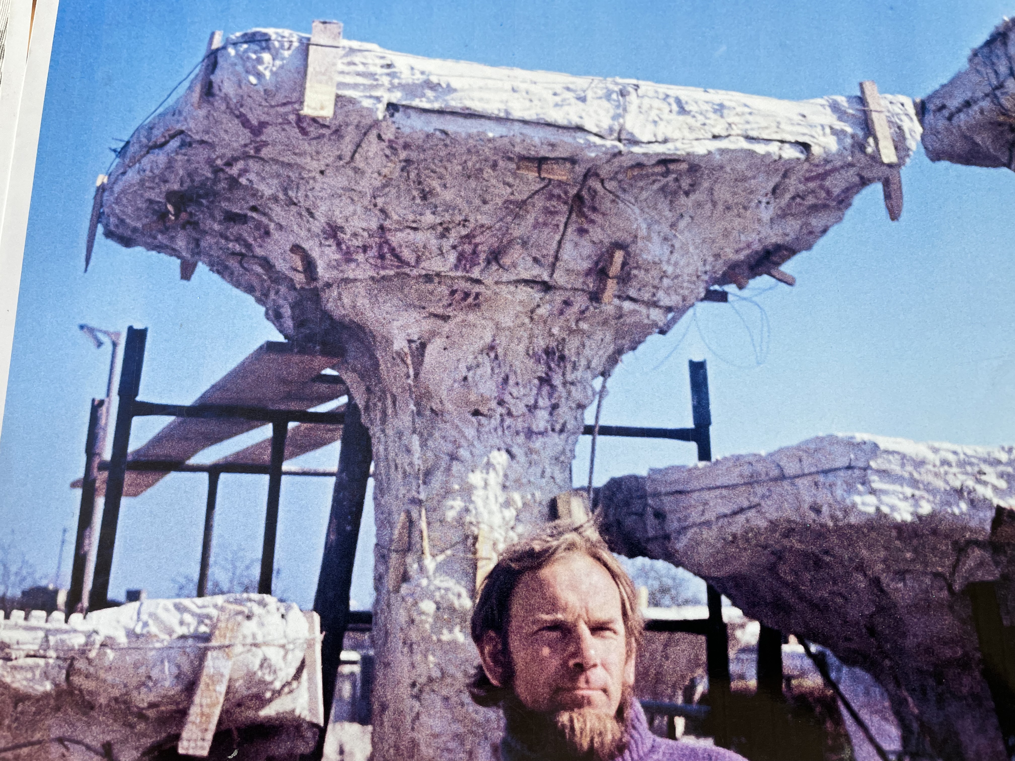 Zachowały się zdjęcia ze starej przepompowni, na których kwiaty, zwane potocznie grzybkami stoją do góry nogami. Na jeden kielich trzeba było przygotować nawet osiem form, z których każda była zbrojona. Łącznie powstały 23 kielichy. Nogi miały od 1 do 3 metrów, w środku biegły rurki, którymi płynęła woda. Opierały się na podstawach o wielkości 20 na 20 centymetrów. U góry wieńczyły je michy o rozmiarach metr na metr. Beton musiał być lekki, więc autor projektu wchodził na górę i mieszał go kijem.