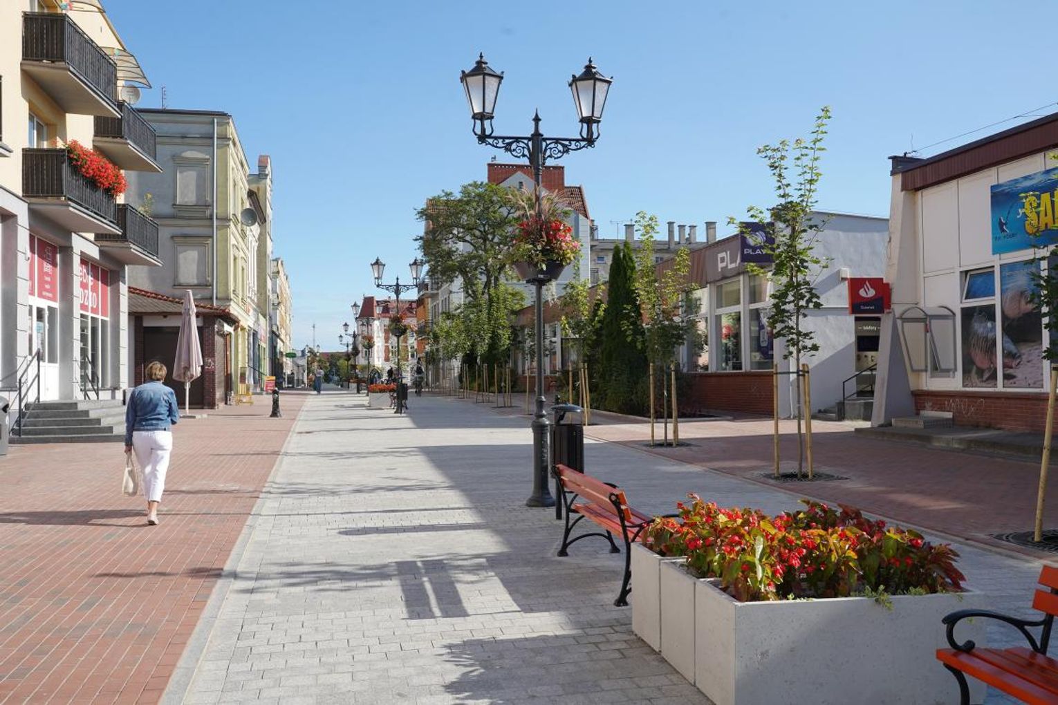 – Zniknął stary asfalt oraz kamień. Pojawiła się nowa estetyczna kostka rzędowa, która stanowi ciąg główny. Natomiast po bokach, chodniki zostały wyłożone kostką klinkierową - mówi Tomasz Kowalczyk, wiceburmistrz Człuchowa. - Wcześniej, przed ułożeniem nawierzchni wykonano też przebudowę sieci wodociągowych oraz kanalizacji deszczowych. W ramach zadania powstała także mała architektura w postaci ławek, donic kwiatowych powieszonych na lampach i koszy na śmieci. Powstało też poidełko z wodą oraz kurtyna wodna, która już tego lata podczas upalnych dni była uruchamiana. Dodatkowo na prośbę mieszkańców zaprojektowano i wykonano dużo nasadzeń w postaci krzewów.