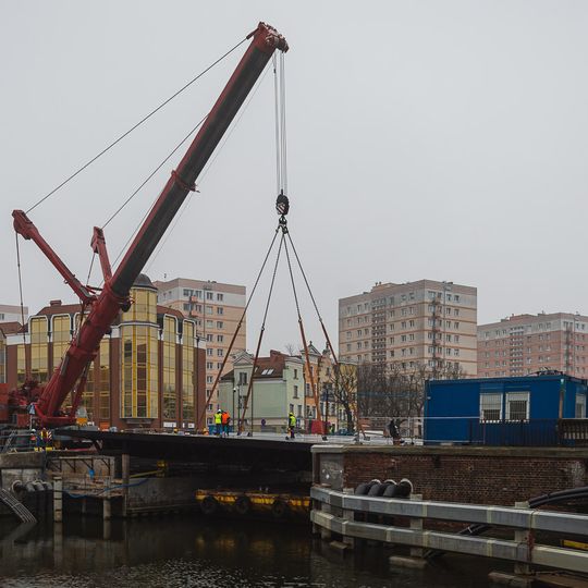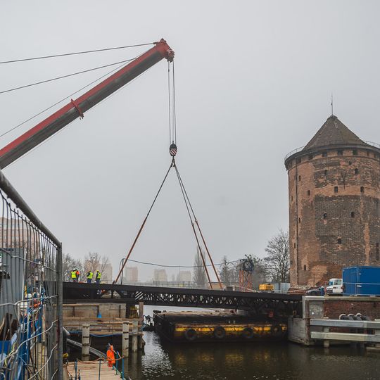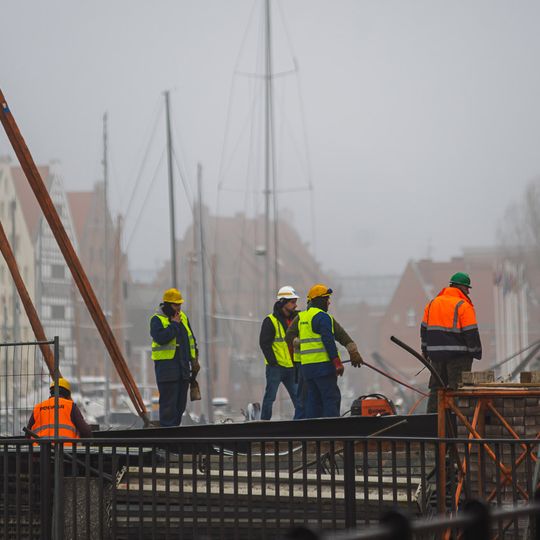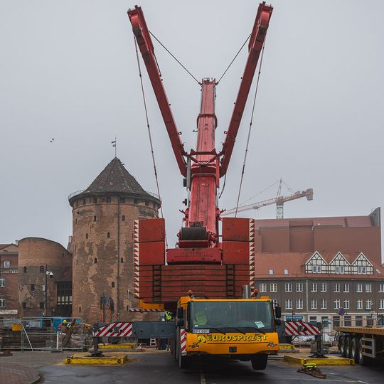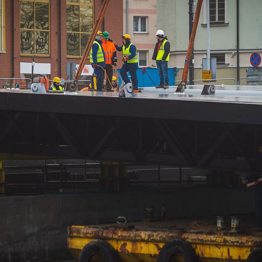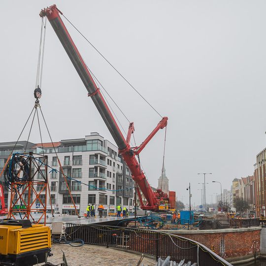 Teraz przyszła pora na zmontowanie przęsła zwodzonego Mostu Stągiewnego. Prace mają potrwać do końca lipca. Ruch pieszych w obrębie skrzyżowania ulic Długie Ogrody, Szafarnia i Szopy jest utrzymany, ruch pojazdów odbywa się objazdami przez ul. św. Barbary i Łąkową.