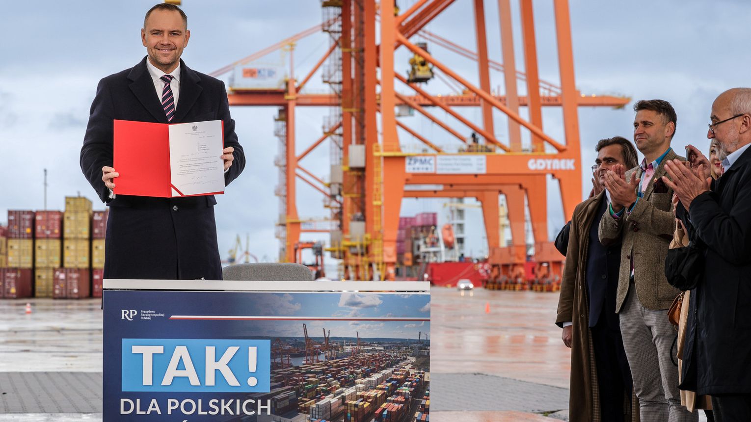 – I tak jak w czasie kampanii wyborczej mówiłem: „Tak! Dla CPK” – ten projekt ustawy jest już w pracach legislacyjnych polskiego Sejmu – tak samo głośno dzisiaj z Gdyni mówię: „Tak! Dla polskich portów”, więc jest to kolejny punkt, który będę realizował jako prezydent RP – podkreślił Karol Nawrocki.