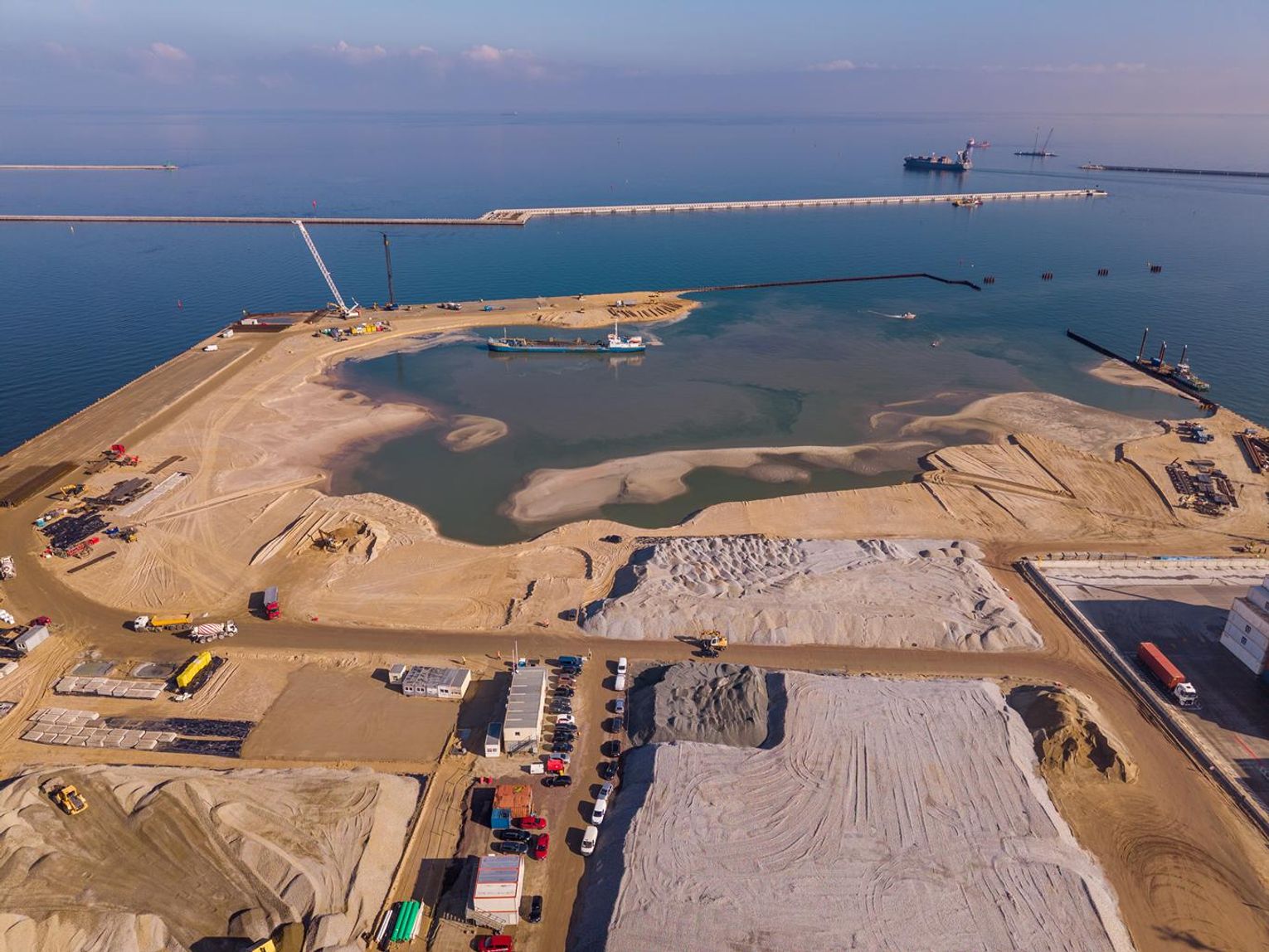 – Codziennie na teren inwestycji dostarczamy od 20 do 30 tys. m³ materiału zasypowego pochodzącego ze źródeł morskich, lądowych i śródlądowych. Do realizacji robót wykorzystujemy najnowocześniejszy sprzęt. Na obecnym etapie zaawansowanie robót refulacyjnych wynosi 80%, co wymaga precyzyjnego planowania i koordynacji robót – mówi Zuzanna Matuszewska z Grupy NDI.