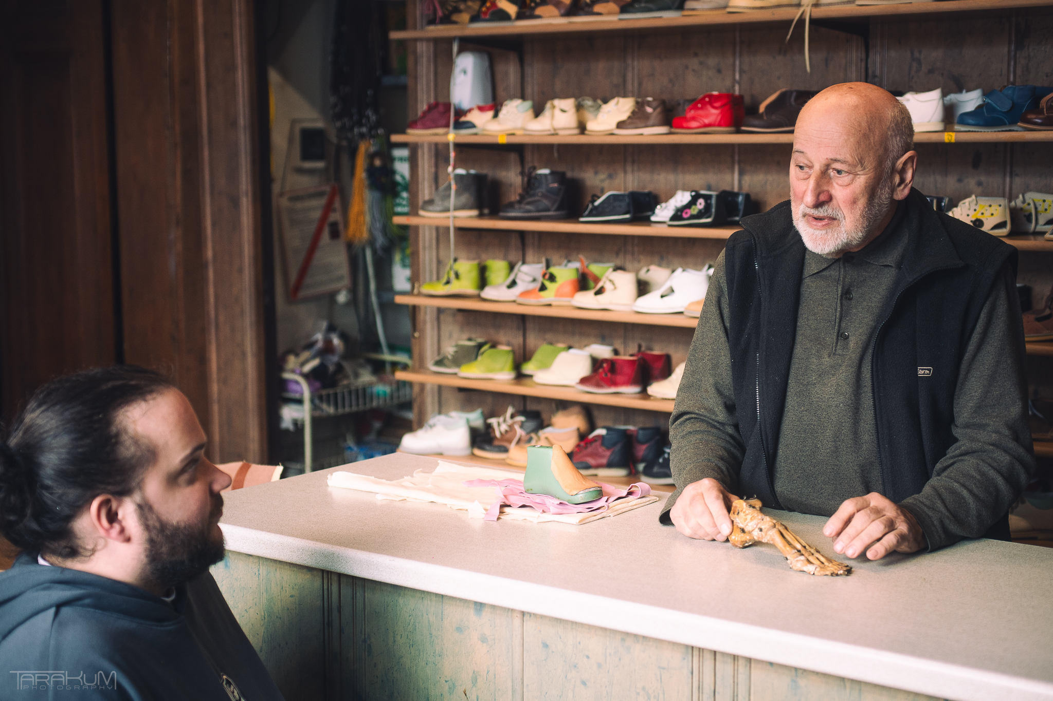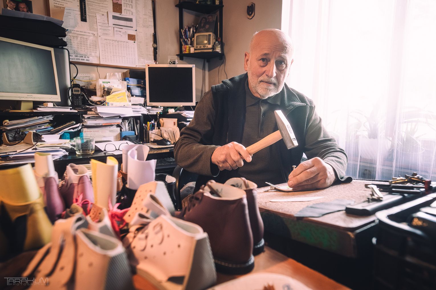 Właściciel Tombutu jest bardzo oddany swojej pracy. Z pasją opowiada o zawodzie szewca.