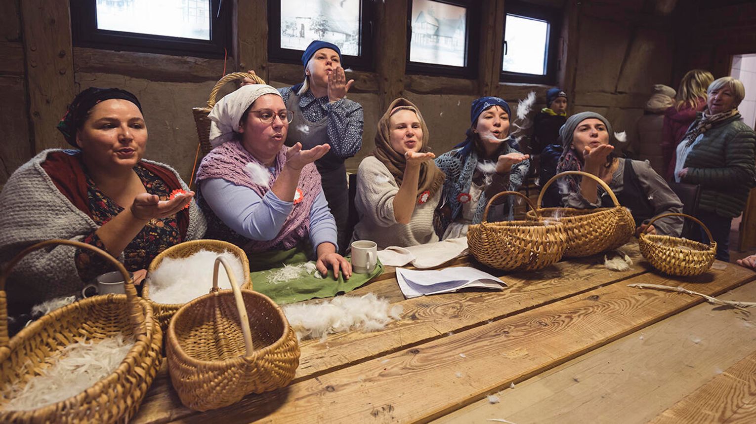 Wśród wystaw stałych muzeum znaleźć będzie można pokazy dawnych jesiennych prac domowych: gręplowania i przędzenia wełny (10 i 11 listopada), czy darcia gęsiego pierza, którym towarzyszyły zawsze wspólne śpiewy.