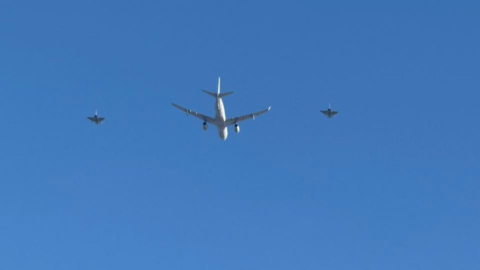 W końcowej fazie podejścia do lądowania A330 MRTT towarzyszyły dwa niemieckie myśliwce Eurofighter Typhoon. Samoloty te stacjonują obecnie w 22. Bazie Lotnictwa Taktycznego w Królewie Malborskim i biorą udział w działaniach sojuszniczych NATO w regionie. Obecność eskorty myśliwskiej wzbudziła duże zainteresowanie wśród obserwatorów lotnictwa i mieszkańców Trójmiasta.