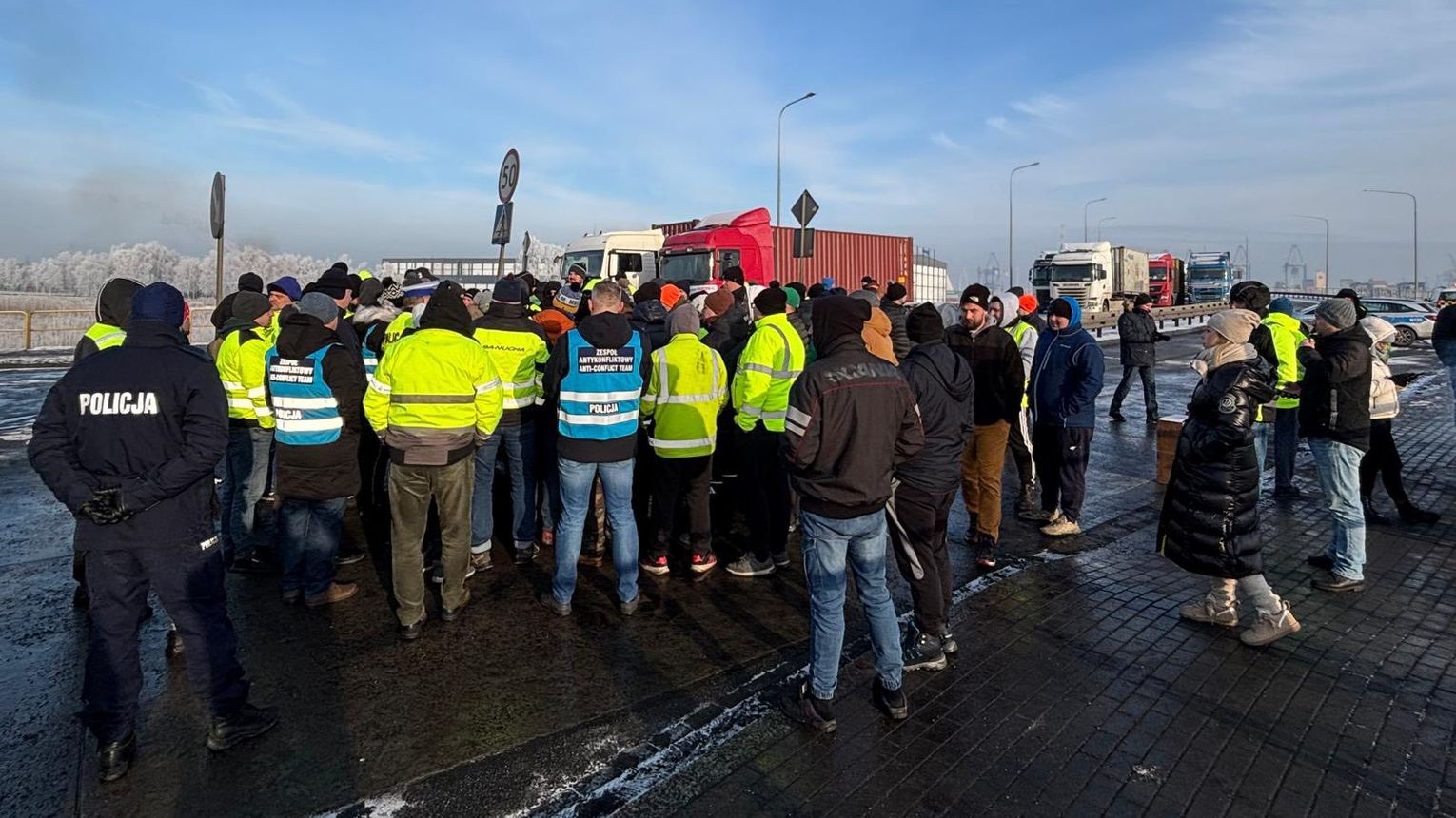 Protest przewoźników drogowych w Trójmieście, który odbywał się w środę, 7 stycznia spowodował ogromne utrudnienia na najważniejszych trasach dojazdowych do portu w Gdańsku i Gdyni. Blokady oraz spowolnienia ruchu dotknęły zarówno kierowców ciężarówek, jak również mieszkańców regionu. Jak podaje Radio Gdańsk, przewoźnicy zablokowali także ulicę Kontenerową, co skutkowało paraliżem Baltic Hub. W kolejnych dniach, 8 i 9 stycznia, odbywał się protest stacjonarny na parkingu buforowym przy ulicy Antoniego Grabarczyka.