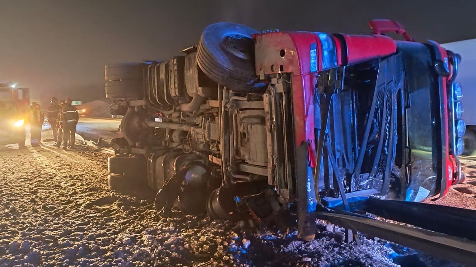 – Pojazd przewrócił się na bok, częściowo wysypując przewożony ładunek zboża – podaje KM PSP Gdańsk.