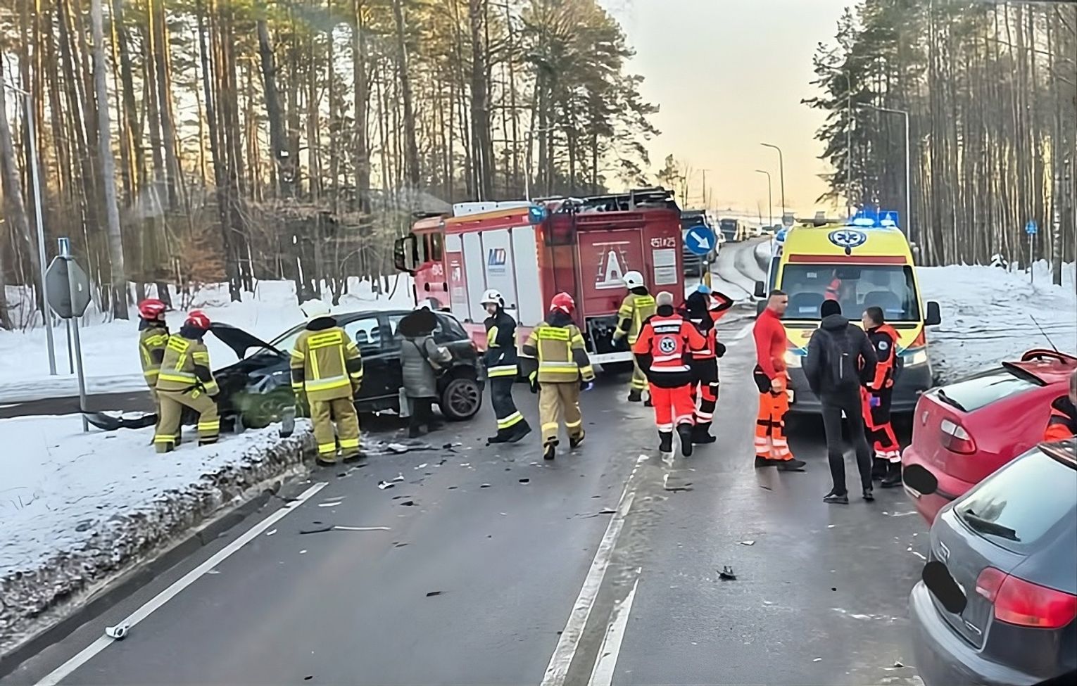 Toyota uderzyła w Seata prowadzonego przez 41-letniego mężczyznę z takim impetem, że ten został zepchnięty na przeciwny pas ruchu, gdzie zderzył się czołowo z trzecim pojazdem - Audi A3 kierowanym przez 20-latka.