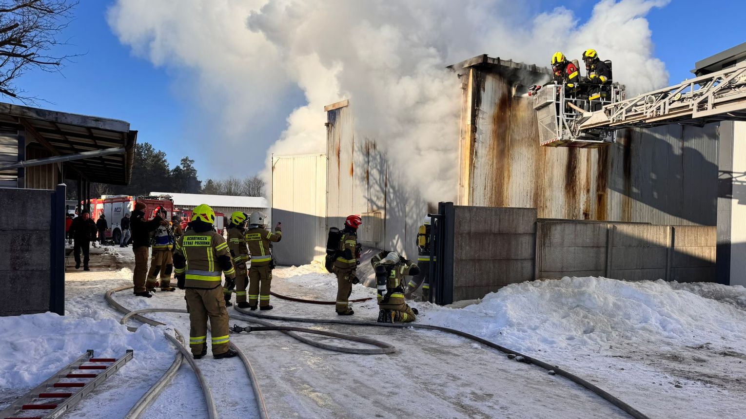 Zgłoszenie o pożarze suszarni w zakładzie drzewnym w Karsinie do stanowiska kierowania w Komendzie Powiatowej Państwowej Straży Pożarnej w Kościerzynie wpłynęło we wtorek, 3 lutego o godz. 8.23.