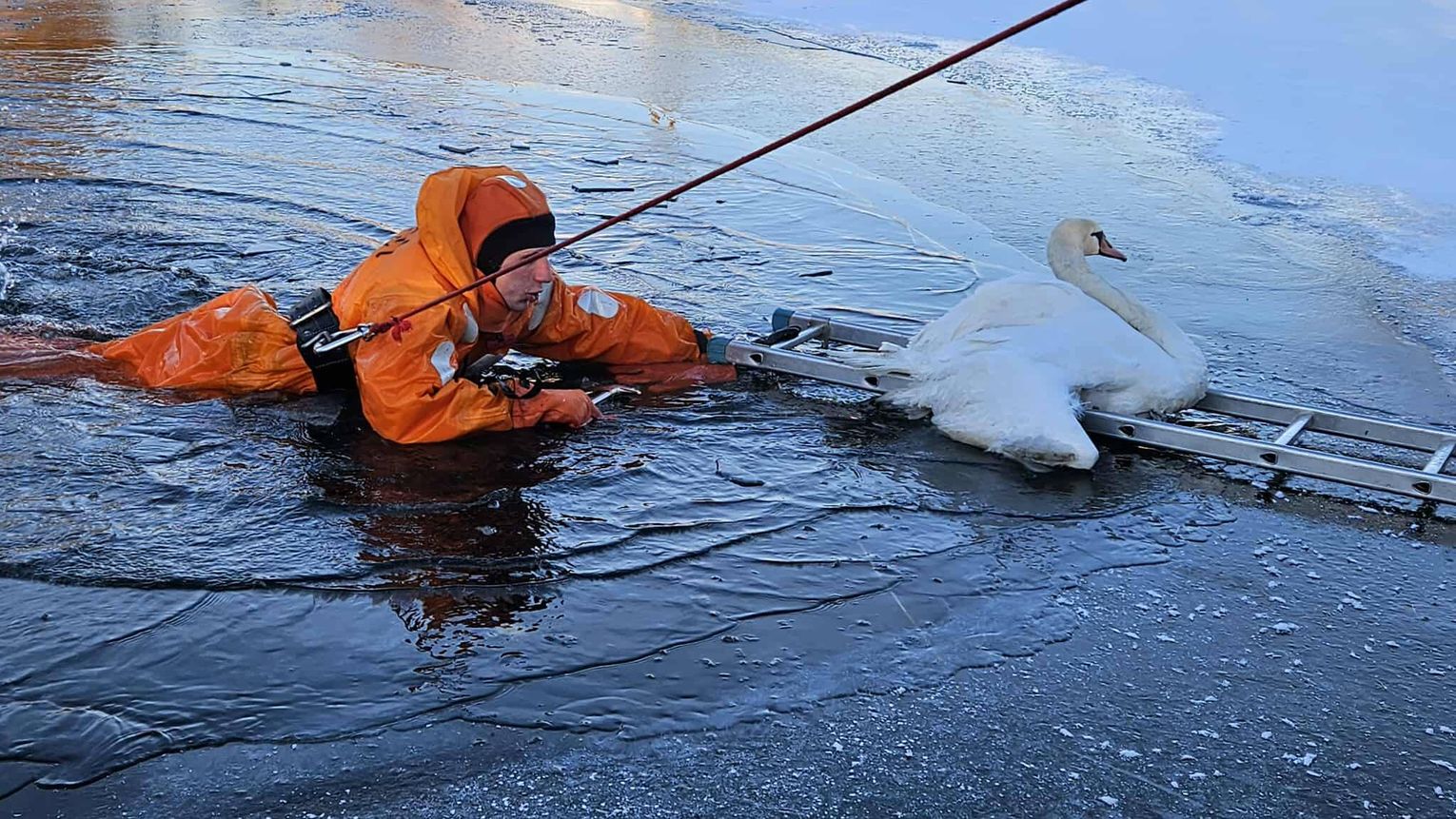 Z dnia na dzień straż pożarna otrzymuje coraz więcej zgłoszeń dotyczących łabędzi znajdujących się na zamarzniętych jeziorach i stawach. Zaniepokojeni mieszkańcy obawiają się, że ptaki są przymarznięte do lodu i umierają z zimna.