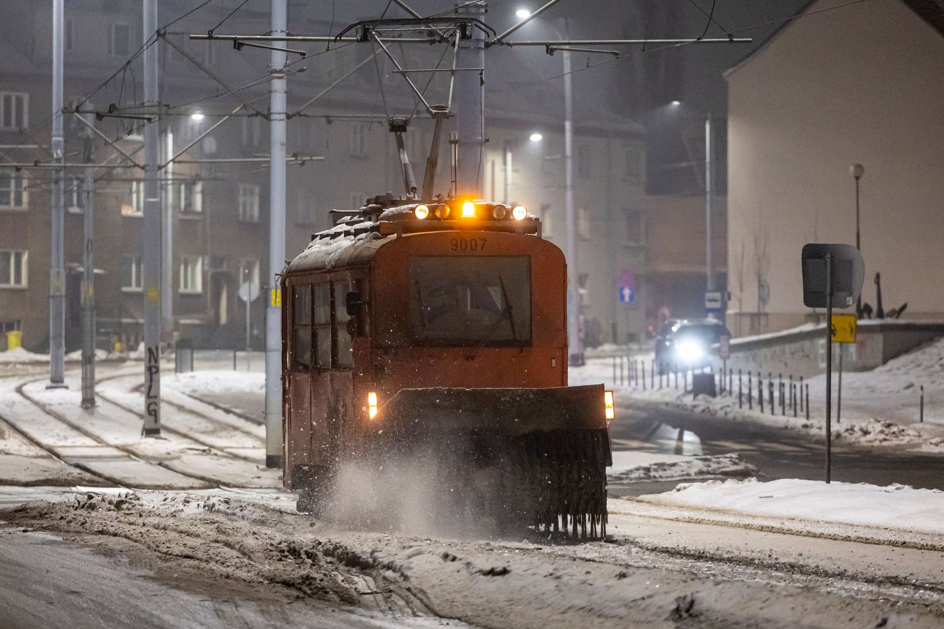 "Baba Jaga" odśnieża tory tramwajowe