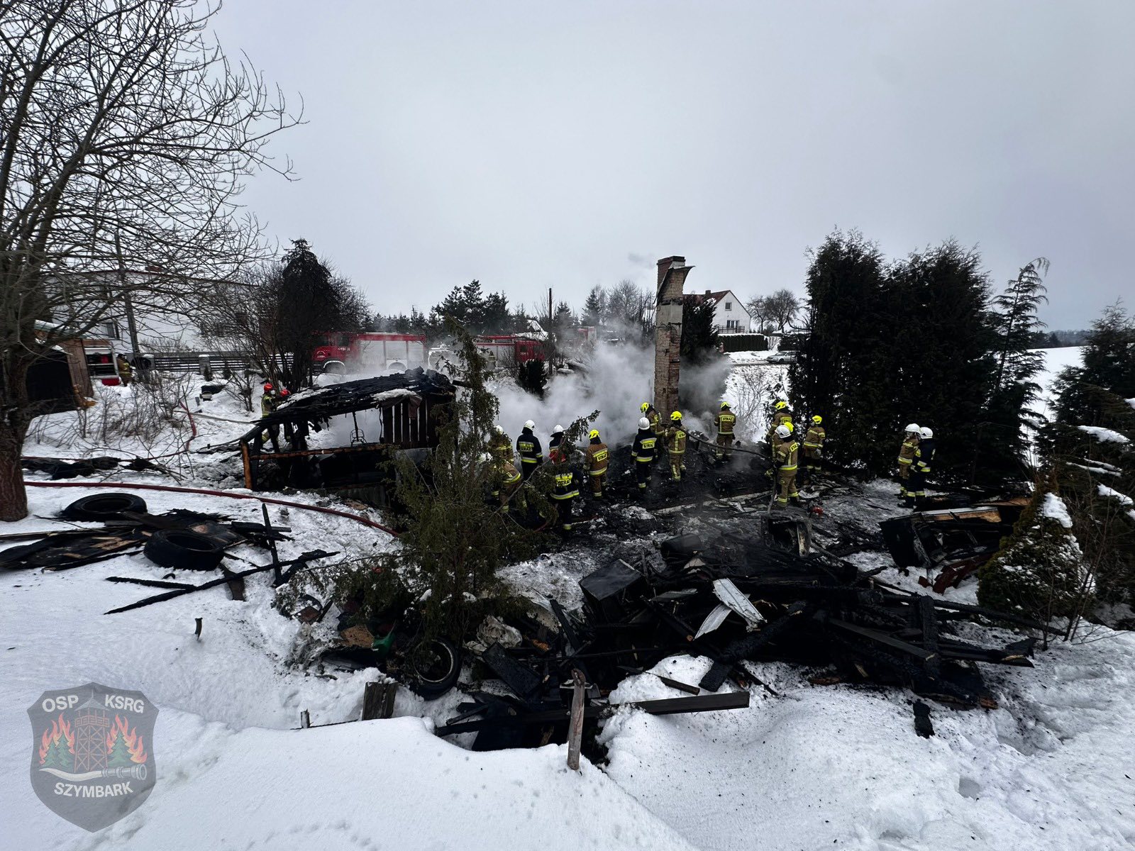 W akcji ratowniczej brało udział 6 zastępów straży. Niestety, domek uległ całkowitemu spaleniu, ale nikomu nic się nie stało.