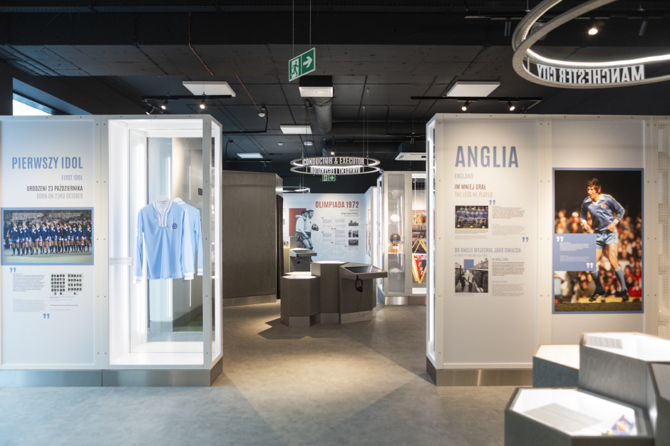 Centralną część na parterze wypełnia wielofunkcyjna sala szkoleniowa, która umożliwia różnorodną aranżację dla ponad setki osób, wraz z zapleczem i szatniami. Miejsce przeznaczone jest m.in. do spotkań, szkoleń, wykładów i treningów teoretycznych. Oprócz tego mieści się tam reprezentacyjny hol z częścią wystawienniczą i sklepikiem pamiątek sportowych. Na piętrze znajduje się przestrzeń ekspozycyjna, poświęcona w całości polskiej legendzie futbolu Kazimierzowi Deynie. Ekspozycja - oprócz pamiątek po piłkarzu - zawiera elementy multimedialne, które uatrakcyjniają jej zwiedzanie. Jest to pierwsze w Polsce centrum i trzecie w Europie całkowicie poświęcone jednej gwieździe światowej piłki nożnej.” - czytamy w opisie inwestycji.