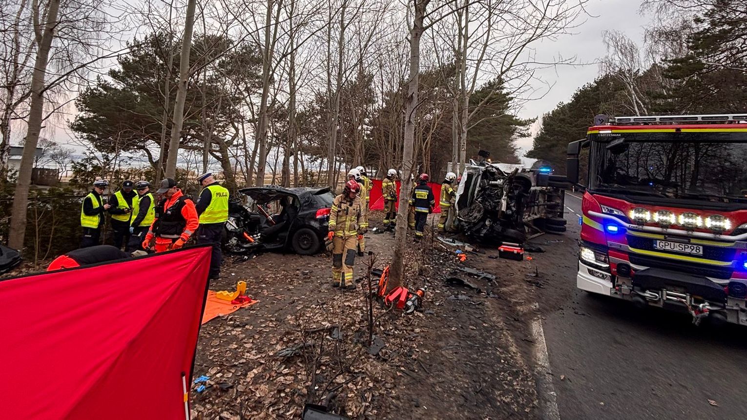 Na miejscu wypadku lądował śmigłowiec Lotniczego Pogotowia Ratunkowego. W działaniach ratunkowych biorą udział trzy zastępy państwowej i Ochotniczej Straży Pożarnej.