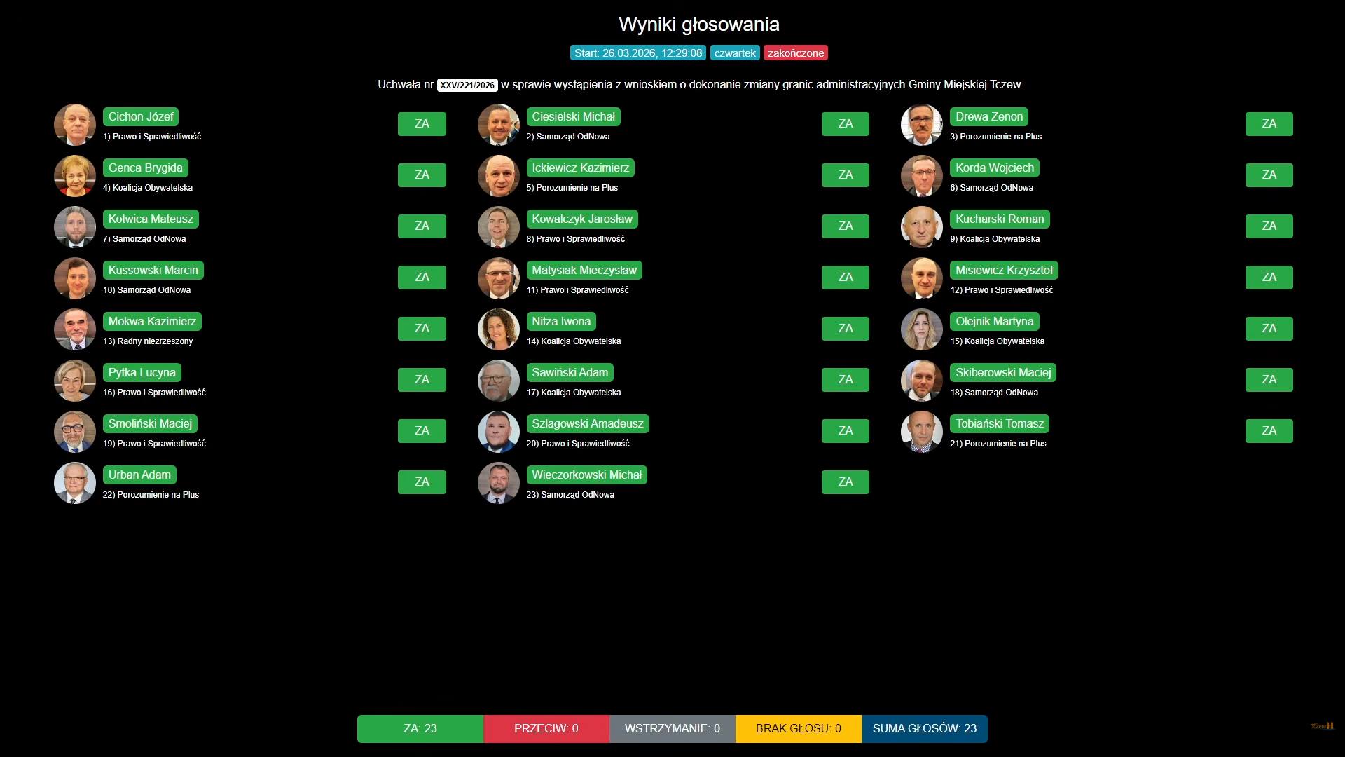 Podczas sesji Rady Miejskiej w czwartek, 26 marca, radni jednogłośnie przyjęli uchwałę dotyczącą wystąpienia z wnioskiem o zmianę granic administracyjnych Tczewa.