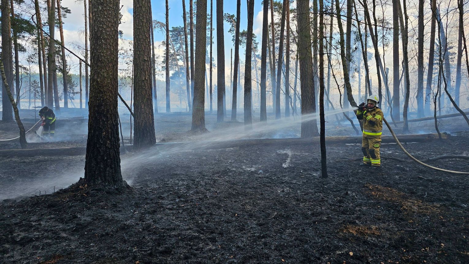 Spłonęło około hektara traw i poszycia leśnego. Strażacy na szczęście opanowali pożar, zanim ten rozprzestrzenił się na kolejne hektary. Trwa dogaszanie ognia. Park Narodowy Bory Tucholskie zaapelował, by w związku z zagrożeniem pożarowym i działaniami Straży Pożarnej oraz Straży Parku turyści nie wchodzili na teren parku.