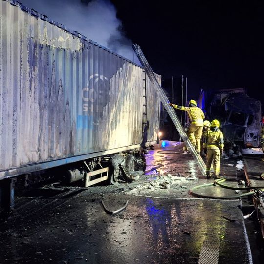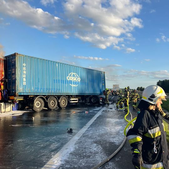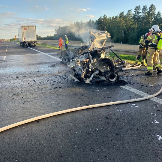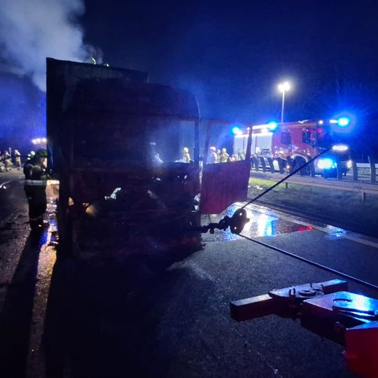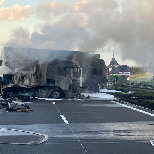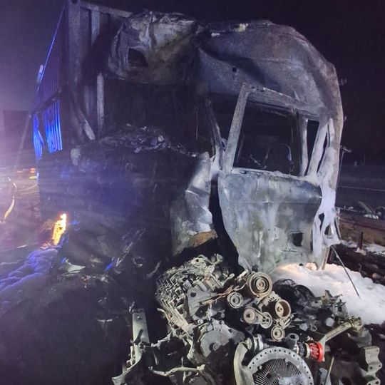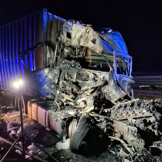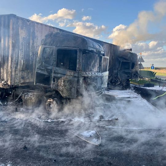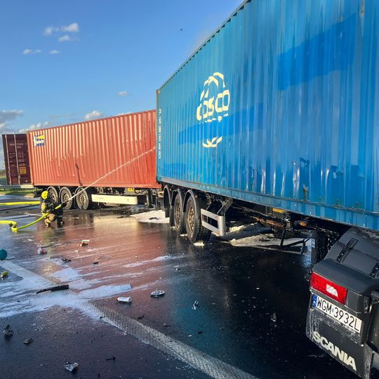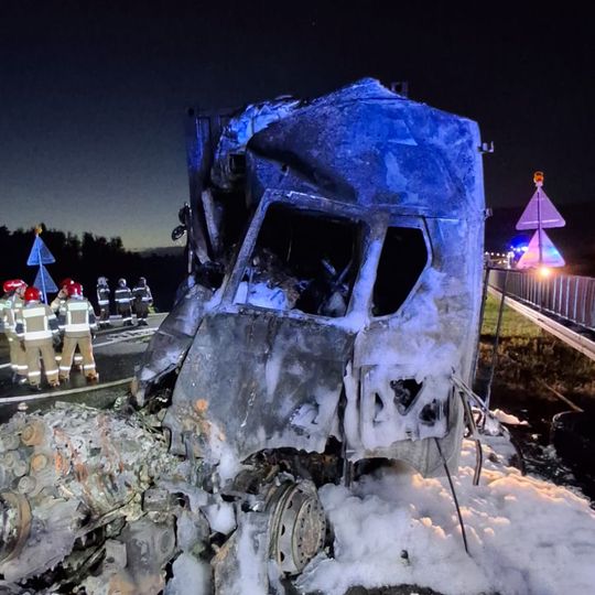 Tragiczny wypadek na autostradzie A1 niedaleko Pelplina. W zdarzeniu uczestniczyły łącznie cztery pojazdy, w tym trzy ciężarowe. Dwa tiry spłonęły. Zginęła jedna osoba. Droga całkowicie zablokowana.