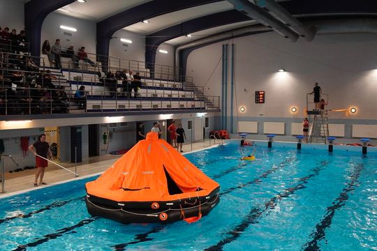Skoki do wody w kombinezonach, walka z odwróconą tratwą i symulacja podjęcia przez śmigłowiec – to nie kadry z filmu, lecz realistyczne szkolenie. Zobacz zdjęcia z pokazu „Echa Heweliusza” na basenie Uniwersytetu Morskiego w Gdyni, gdzie studenci oraz eksperci zaprezentowali, jak wygląda walka o przetrwanie na morzu.