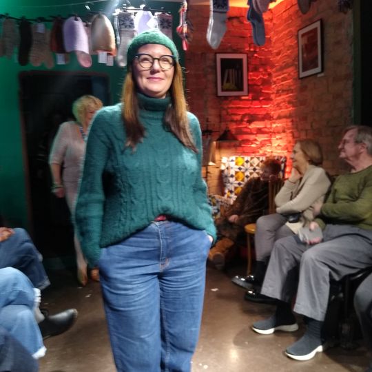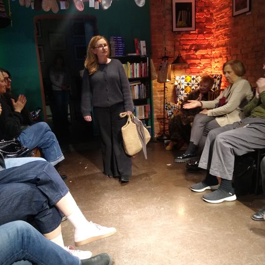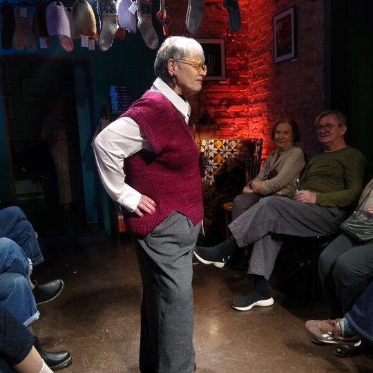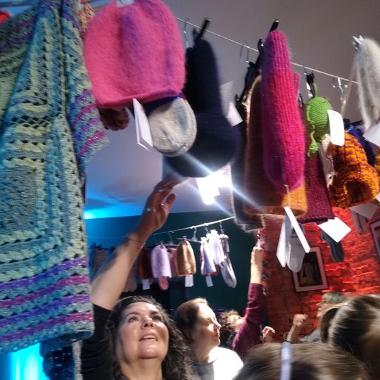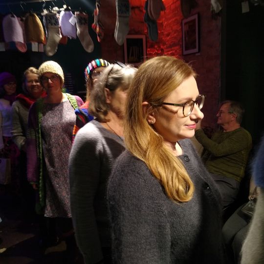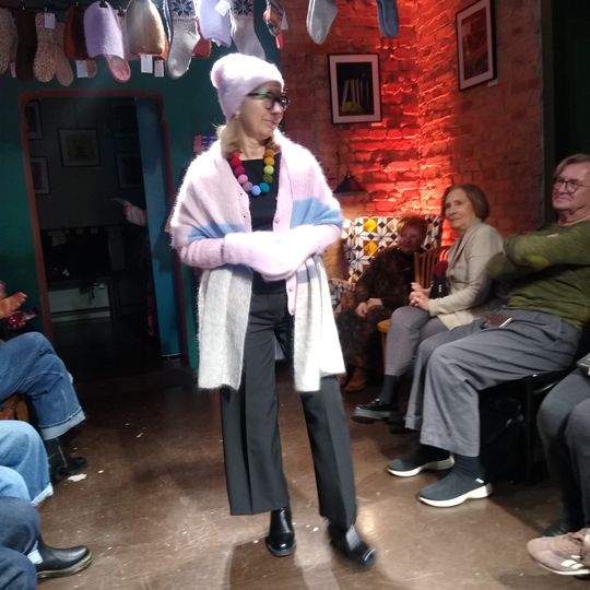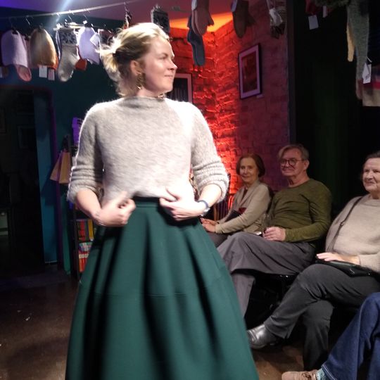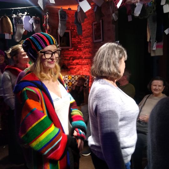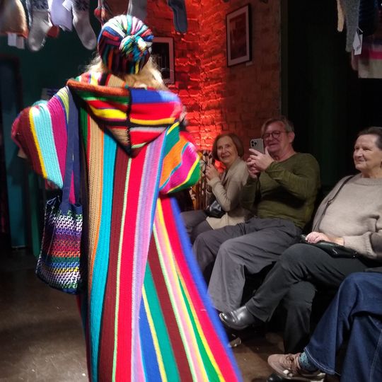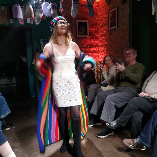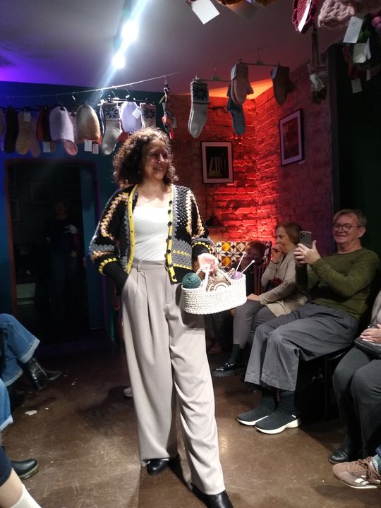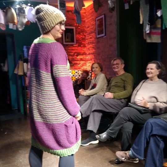 W specjalnie zaaranżowanym niewielkim wnętrzu swoje (arcy)dzieła zaprezentowały na wybiegu panie, które w Księgarni Kameralnej „Książka i Wino” spotykają się na Dziewiarskich Wtorkach.