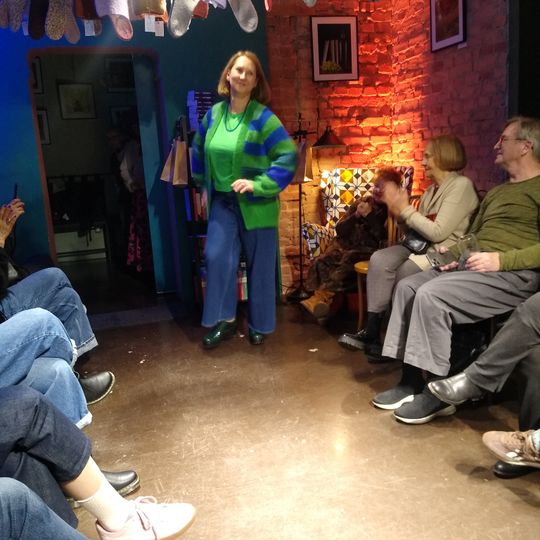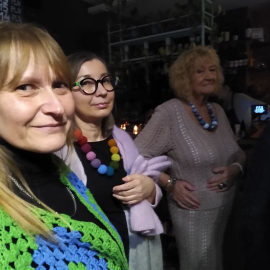 Pokaz mody w Księgarni Kameralnej "Książka i Wino". Na wybiegu - dziewiarki