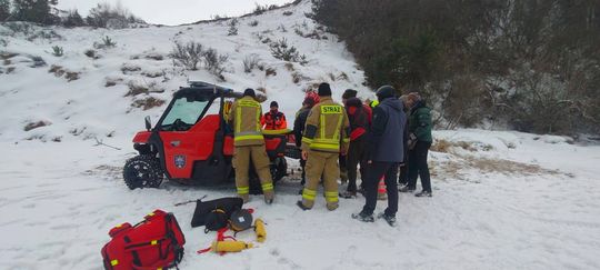 Zobacz zdjęcia z akcji ratowania paralotniarza, który spadł z klifu w Chłapowie. Służby ratownicze pracowały w trudnym terenie.
