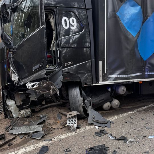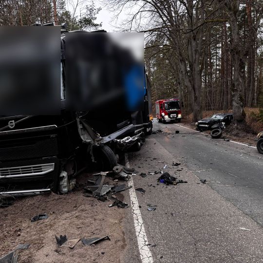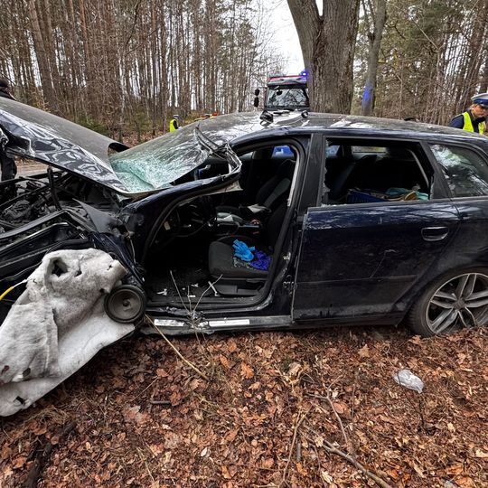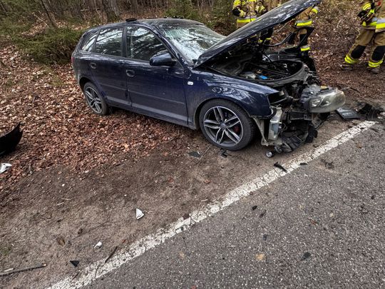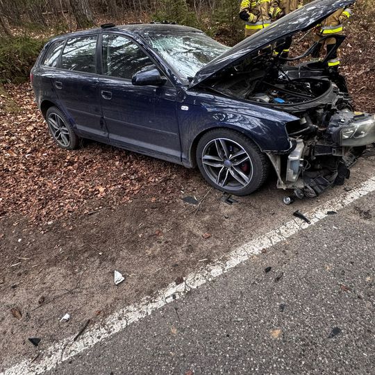 Wypadek na ul. Luzińskiej w Zęblewie. Audi zderzyło się z ciężarówką Kierowca osobówki został zakleszczony w aucie, w ciężkim stanie trafił do szpitala. Droga jest zablokowana.