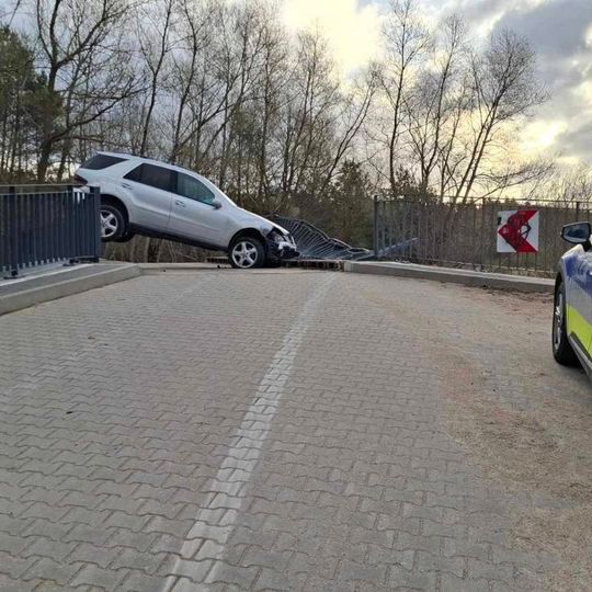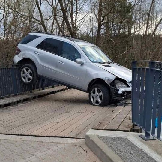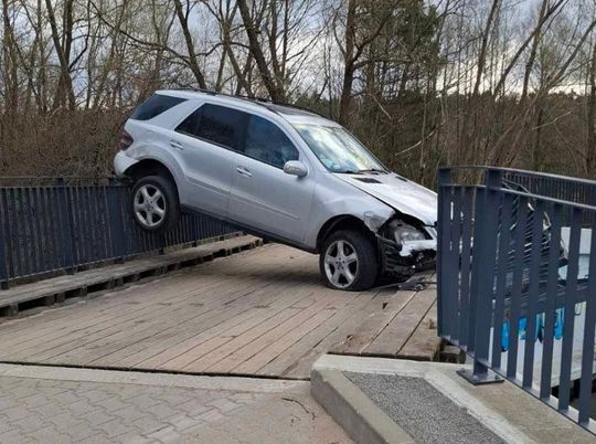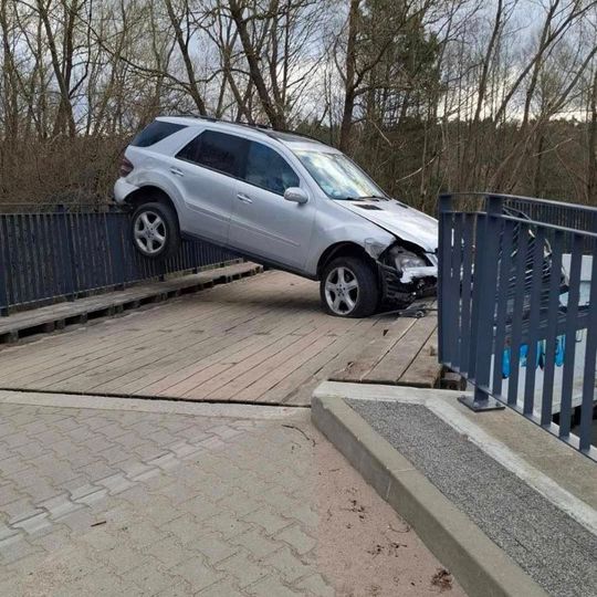 W Bolszewie samochód zawisł na moście!