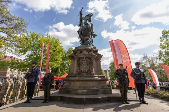 Święto Konstytucji 3 Maja w Gdańsku. Kwiaty pod pomnikiem Jana III Sobieskiego