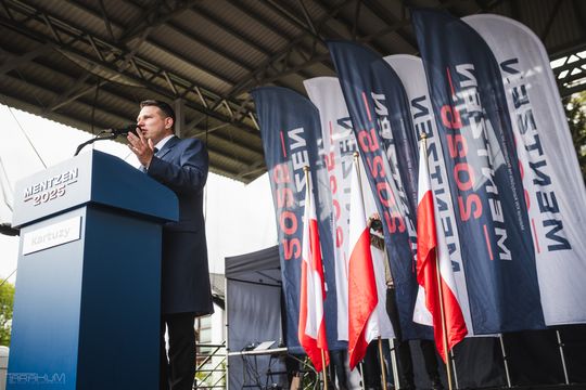 Sławomir Mentzen na spotkaniu z wyborcami w Kartuzach