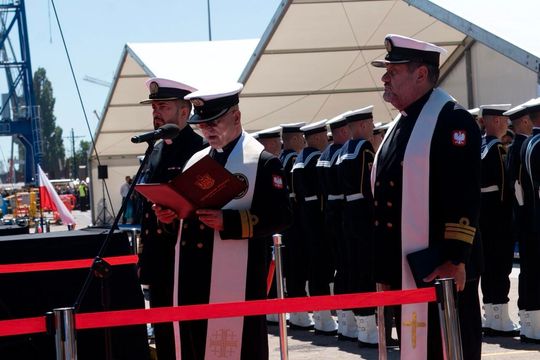 Wodowanie i chrzest okrętu rozpoznawczego Jerzy Różycki w Gdańsku