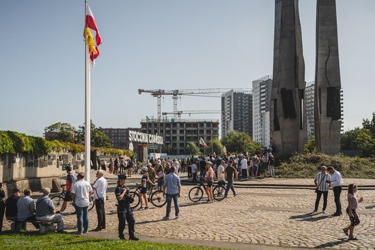 Rocznica Porozumień Sierpniowych. Otwarta Brama nr 2. Odgrodzony barierkami Pomnik Ofiar Grudnia