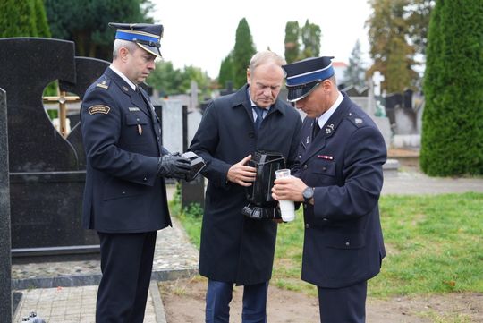 Zdjęcie: Premier Donald Tusk na grobie druha OSP Sierakowice...