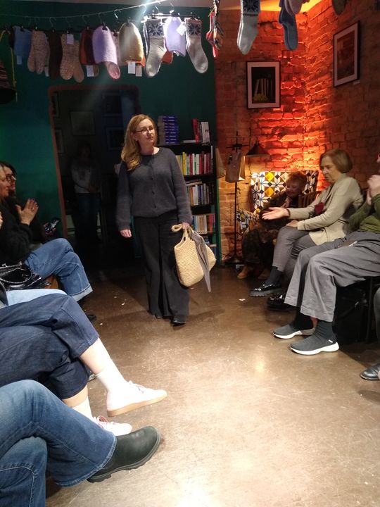 Pokaz mody w Księgarni Kameralnej "Książka i Wino". Na wybiegu - dziewiarki
