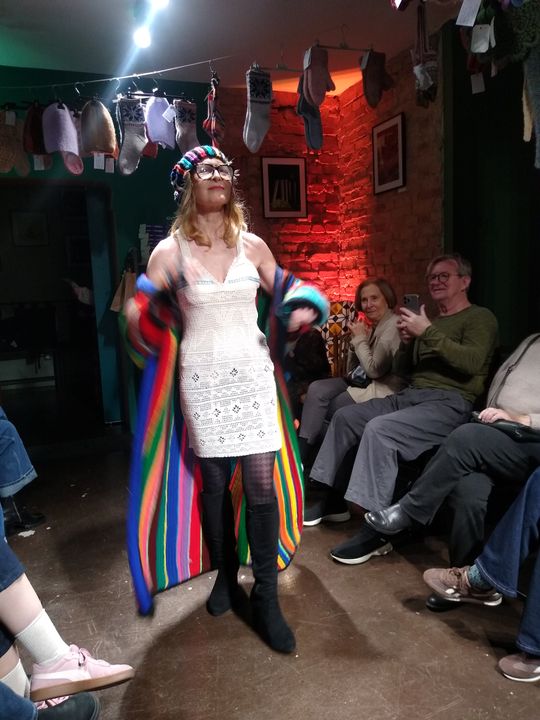 Pokaz mody w Księgarni Kameralnej "Książka i Wino". Na wybiegu - dziewiarki