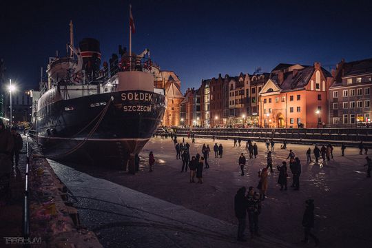 Skuta lodem Motława przyciąga tłumy. Policja apeluje o ostrożność