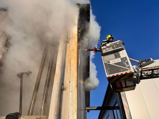 Pożar suszarni w zakładzie drzewnym w Karsinie
