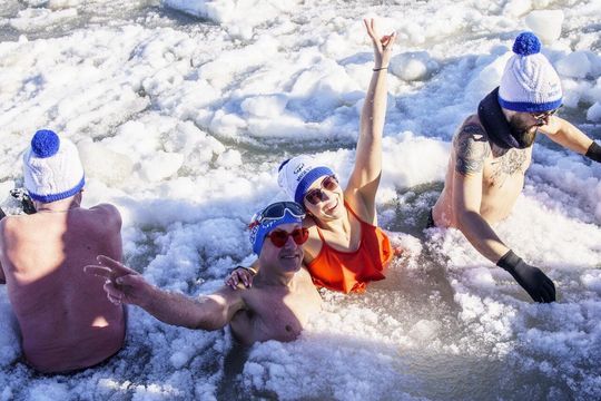 Zdjęcie: Walentynkowa kąpiel morsów w Sopocie. Woda zimna, a...