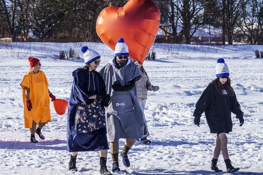 Zdjęcie: Walentynkowa kąpiel morsów w Sopocie. Woda zimna, a...