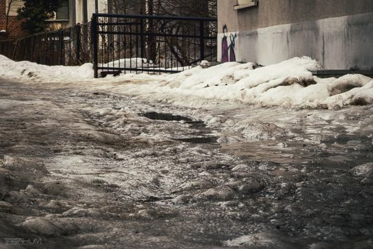 Balet na oblodzonych chodnikach Gdańska