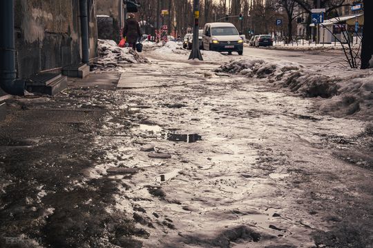 Balet na oblodzonych chodnikach Gdańska