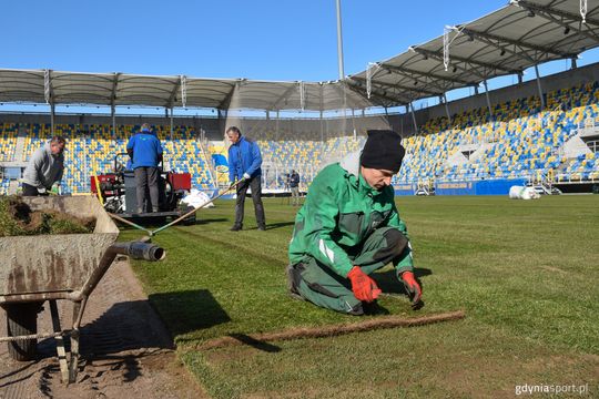 Nowa murawa na stadionie w Gdyni. Tak wyglądała wymiana