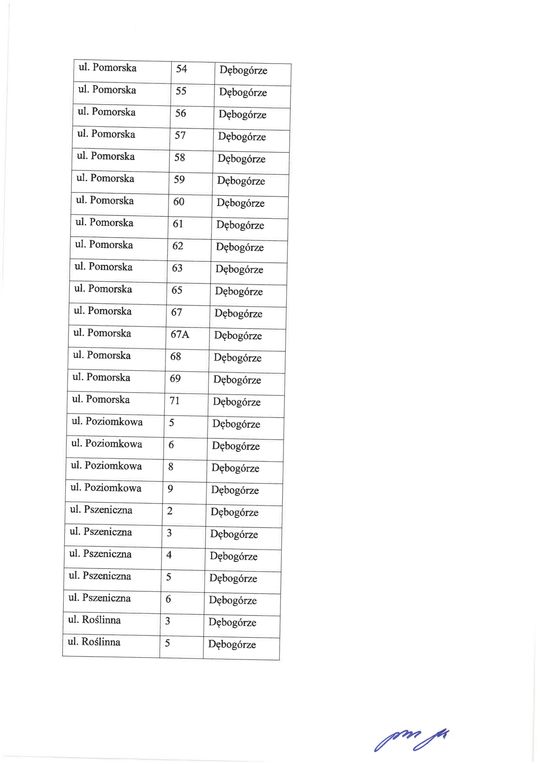 Zdjęcie: Lista adresów w Kazimierzu i Dębogórzu objętych ewa...
