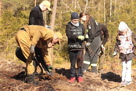 Wspólne sadzenie lasu w leśnictwie Bącka Huta w Nadleśnictwie Kartuzy.