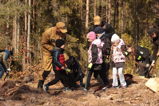 Wspólne sadzenie lasu w leśnictwie Bącka Huta w Nadleśnictwie Kartuzy.